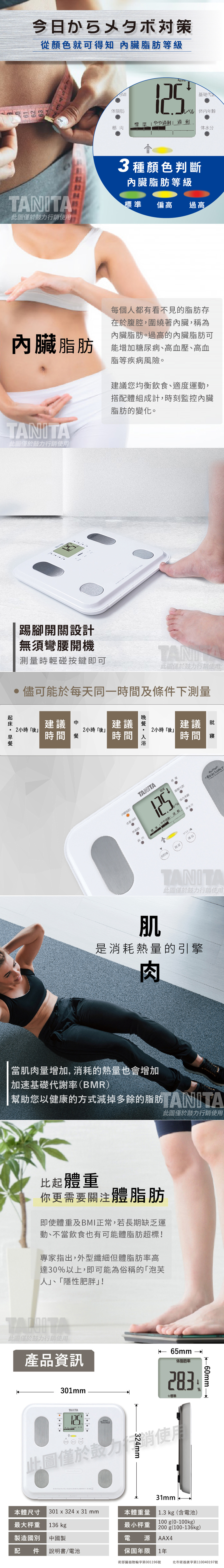 ●3種顏色判斷內臟脂肪等級 (標準/偏高/過高)