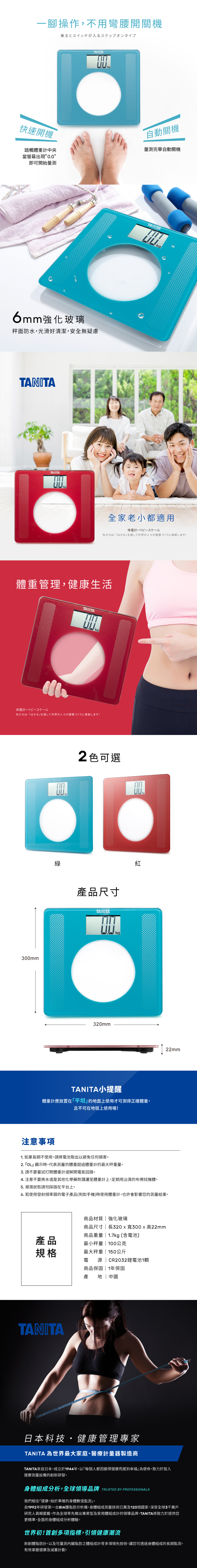 TANITA為世界最大的家庭、醫療磅秤製造商且擁有60多年生產經驗,在日本國內市場的佔有率高達七成,並高居全世界家用磅秤銷售 NO.1,其品牌知名度與商品品質皆深受消費者肯定,亦為台灣巿場中體重體脂肪管理的領導品牌。