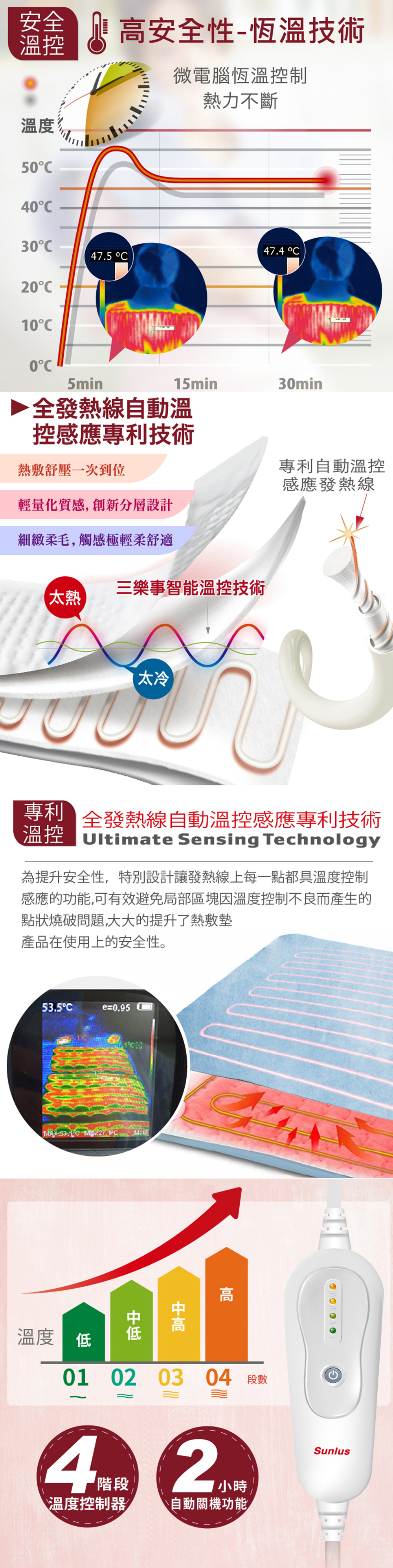 ● 四段溫度控制,2小時自動關機