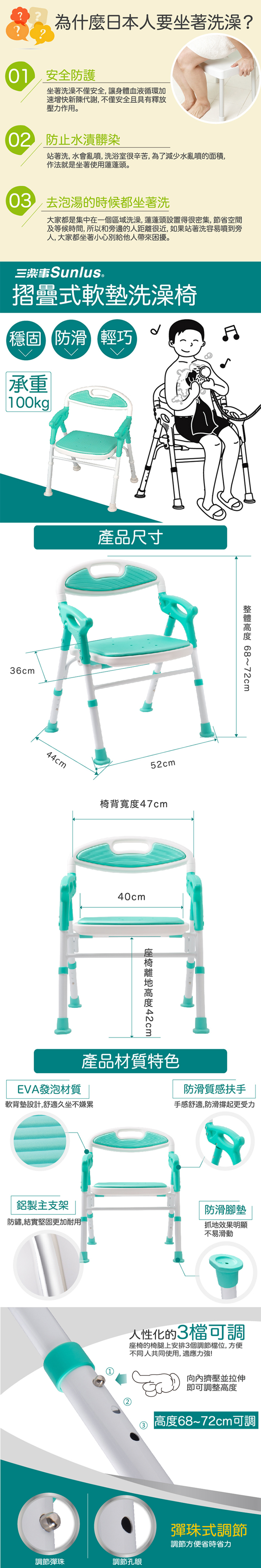 ●浴室摔倒層出不窮!Sunlus三樂事摺疊式軟墊洗澡椅,讓家中的孕婦、老年人、孩童可以放心入浴!